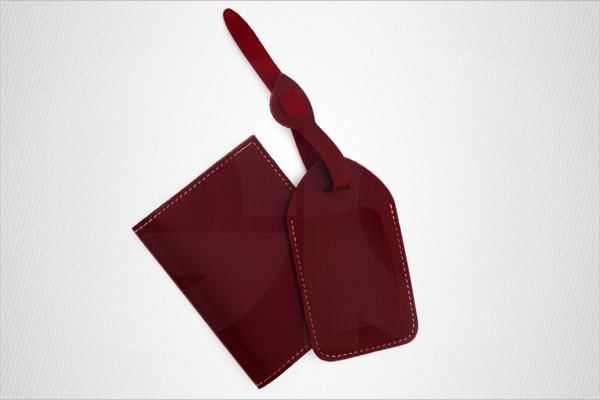 Kit para viagens executivo, composto de porta passaporte e tag de identificação de mala. Uma personalização em baixo relevo já inclusa. (13828).